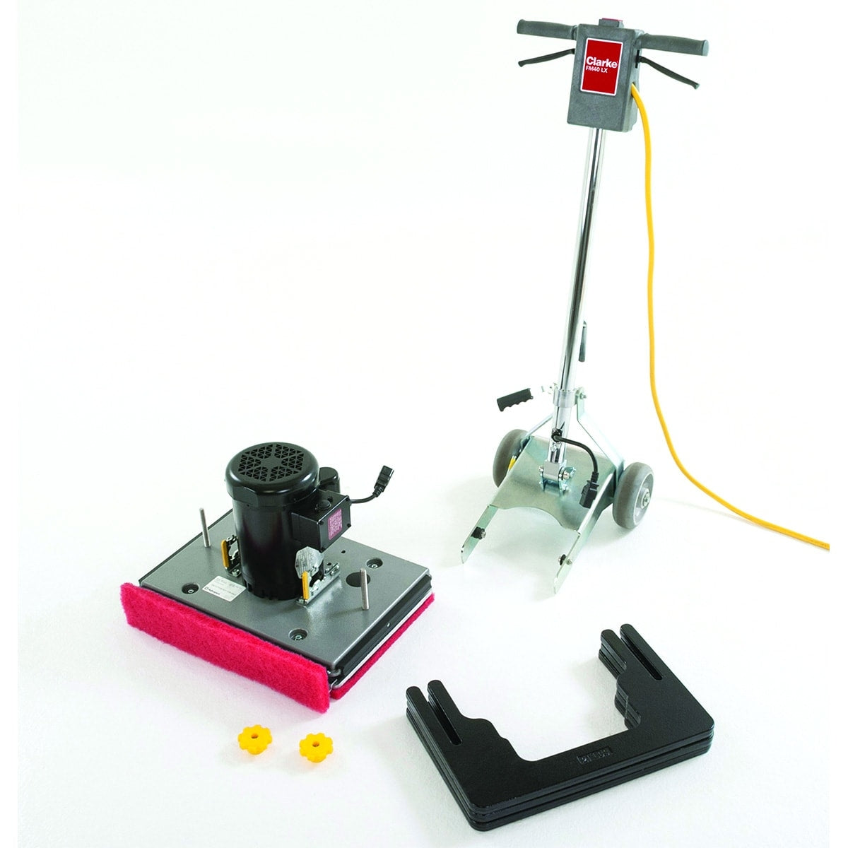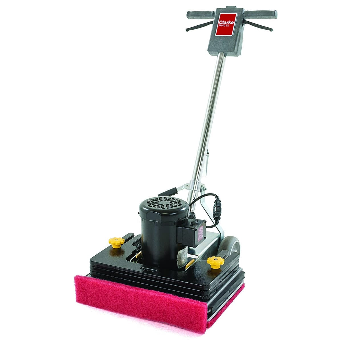 Don’t let the compact size fool you! The Clarke FM40 is a beast when it comes to orbital floor buffers. The machine comes standard with a heavy duty 1.5 horsepower motor, 160 pounds of down pressure and a 3,540 RPM pad driver. The floor buffer weighs 98 pounds by itself, but also comes with 3 weights weighing 21 pounds each. This gives you a full 161 pounds of down pressure for maximum scrubbing and stripping effectiveness.